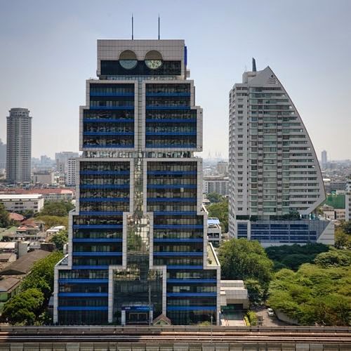 Fue diseñada por los años 80 por el arquitecto tailandés Sumet Jumsai. El edificio fue terminado en 1986, lo que explica por qué se parece mucho al famoso robot R2-D2 de la saga Star Wars.